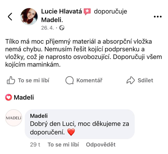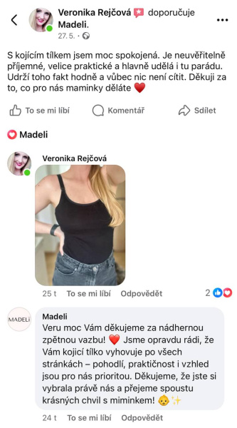 Přinášíme vám zkušenosti ostatních maminek, které si vybraly produkty Madeli. Děkujeme, že nám pomáháte tvořit věci, které mají skutečný smysl. Děkujeme, že jste s námi.